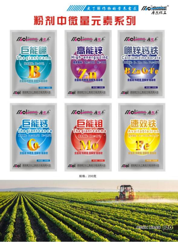 3.旱地土壤,每畝地高能鋅用量200g,播種整地前將高能鋅與復合肥或細土拌勻后撒施、條施或穴施。